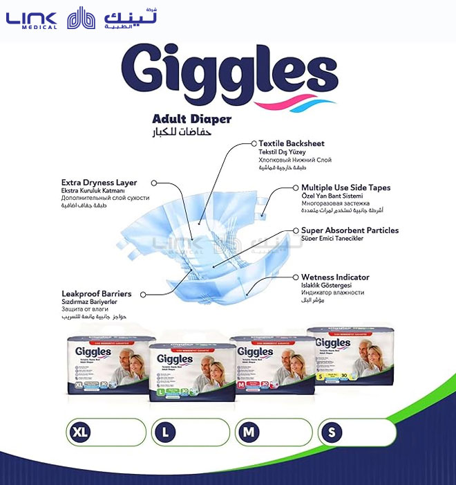 حفاضات كبار السن | جيجلز | لاصق | 30 قطعة | XL