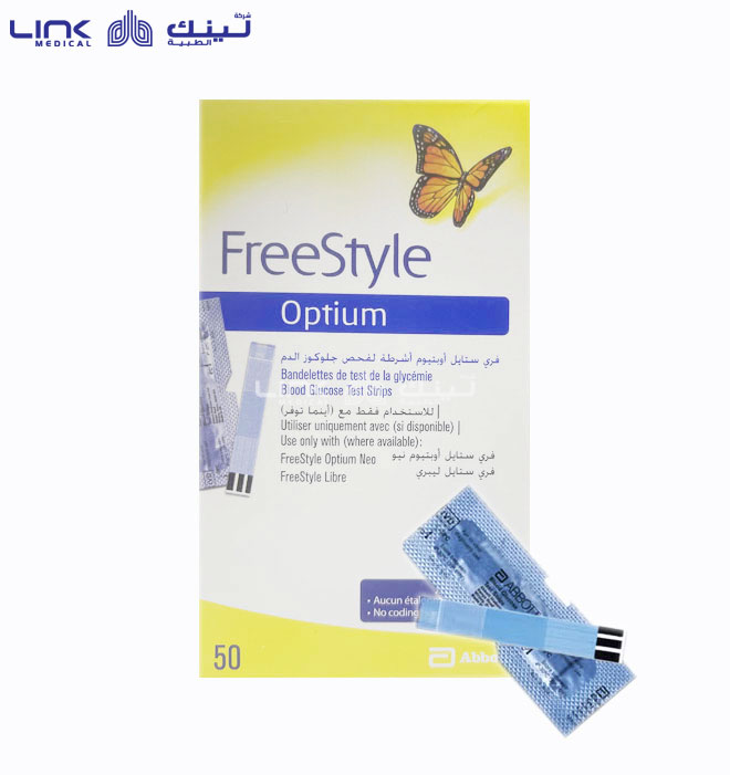 شرائط قياس السكر فري ستايل أوبتيوم 50 شريط