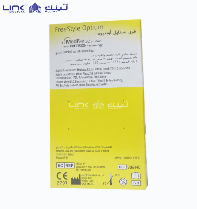 مصمم للتوافق: متوافق مع أجهزة قياس السكر FreeStyle Optium.